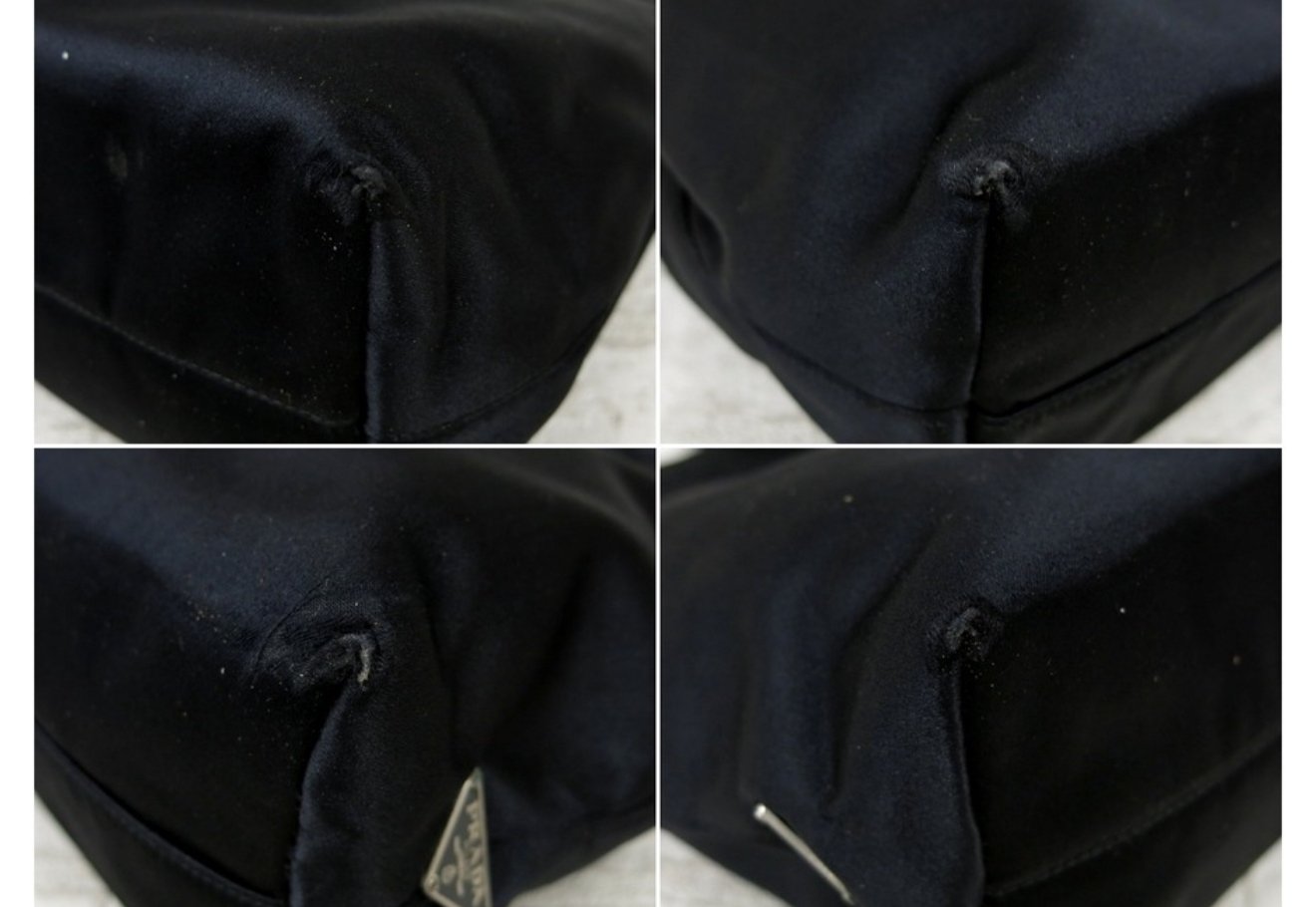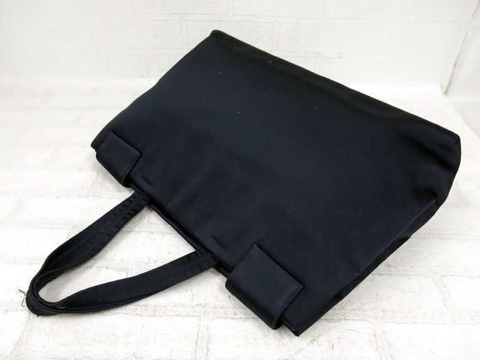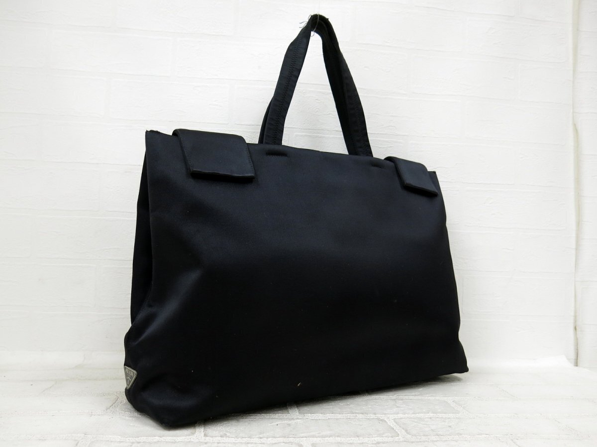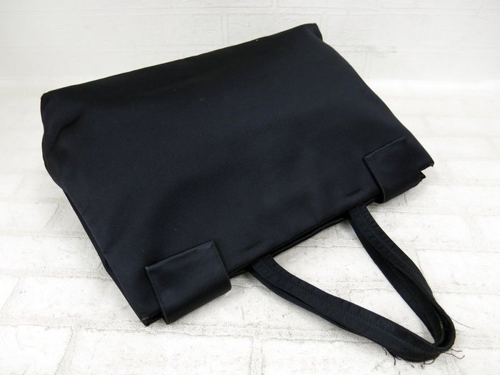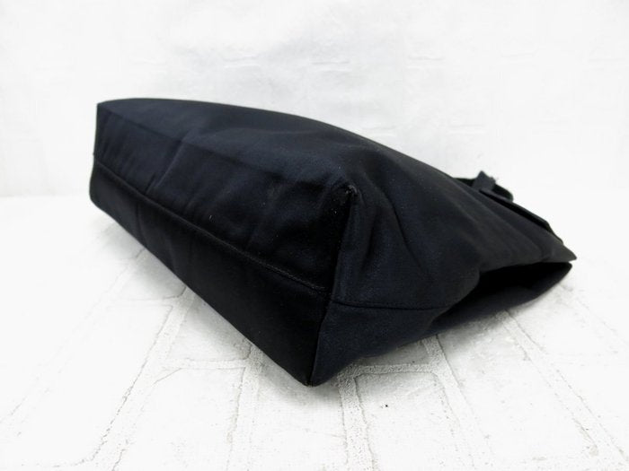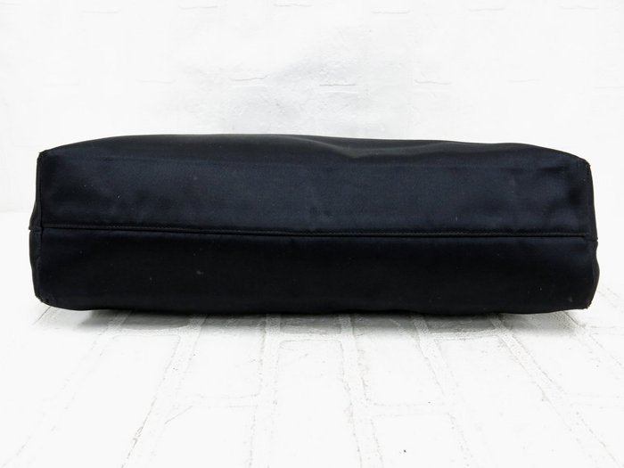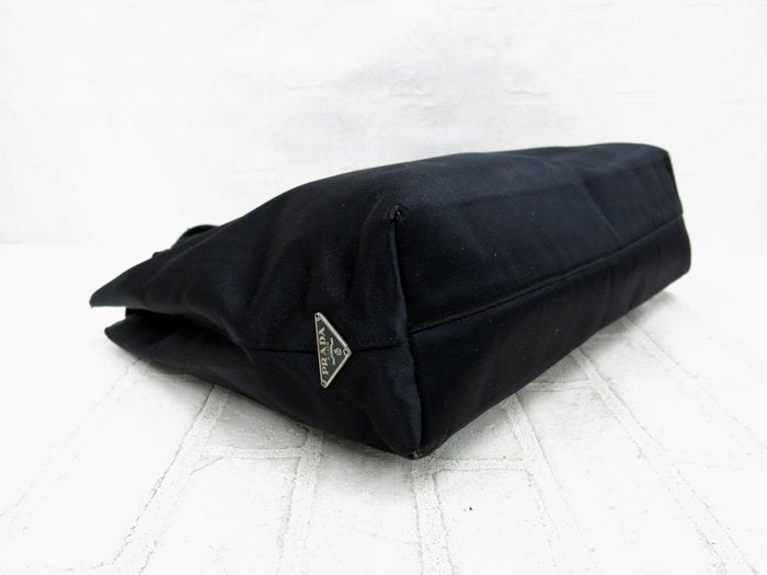 Elegante bolso de mano de Prada, confeccionado en satén negro con acabados de alta calidad. Su diseño estructurado y espacioso lo convierte en una pieza práctica y sofisticada, ideal para uso diario o eventos formales.